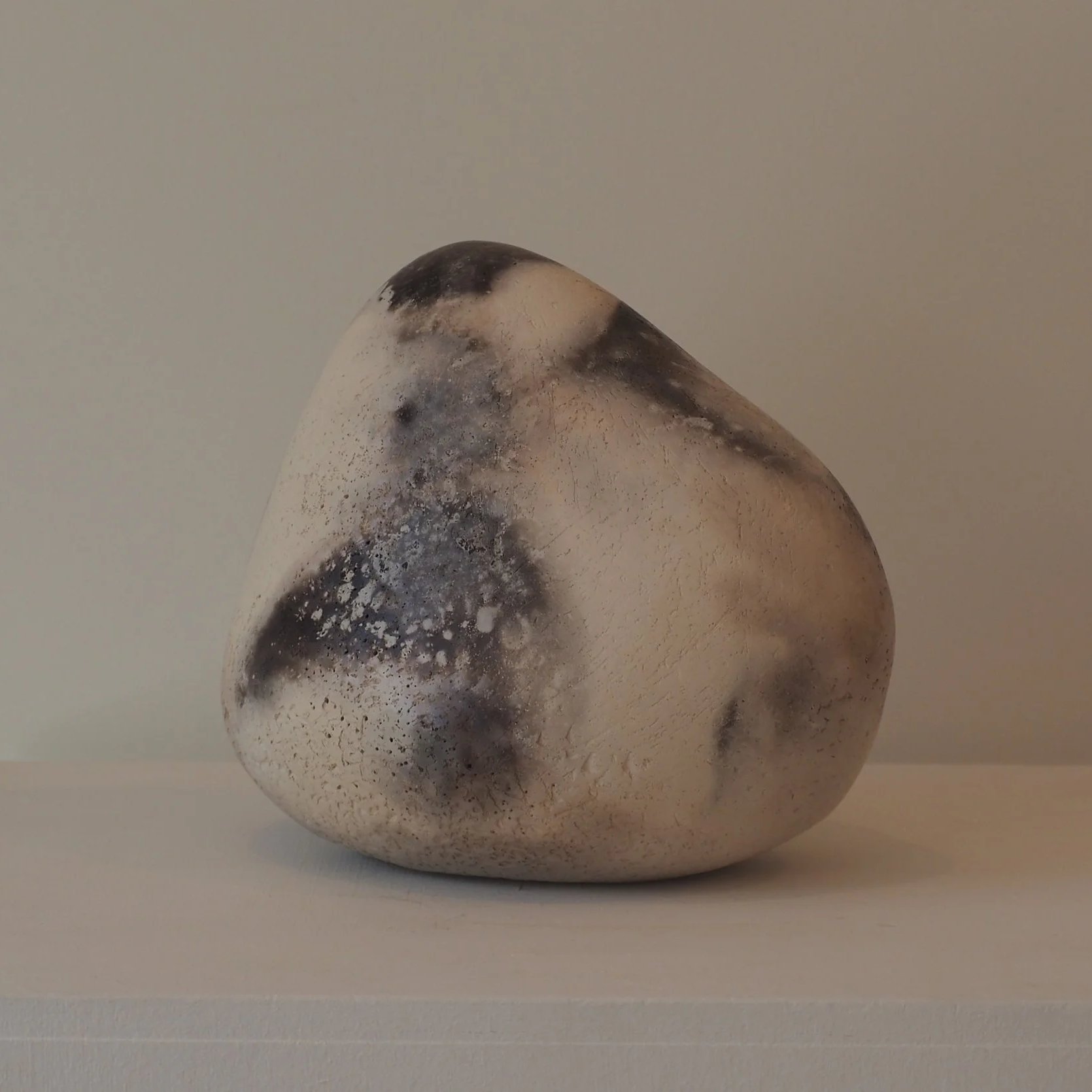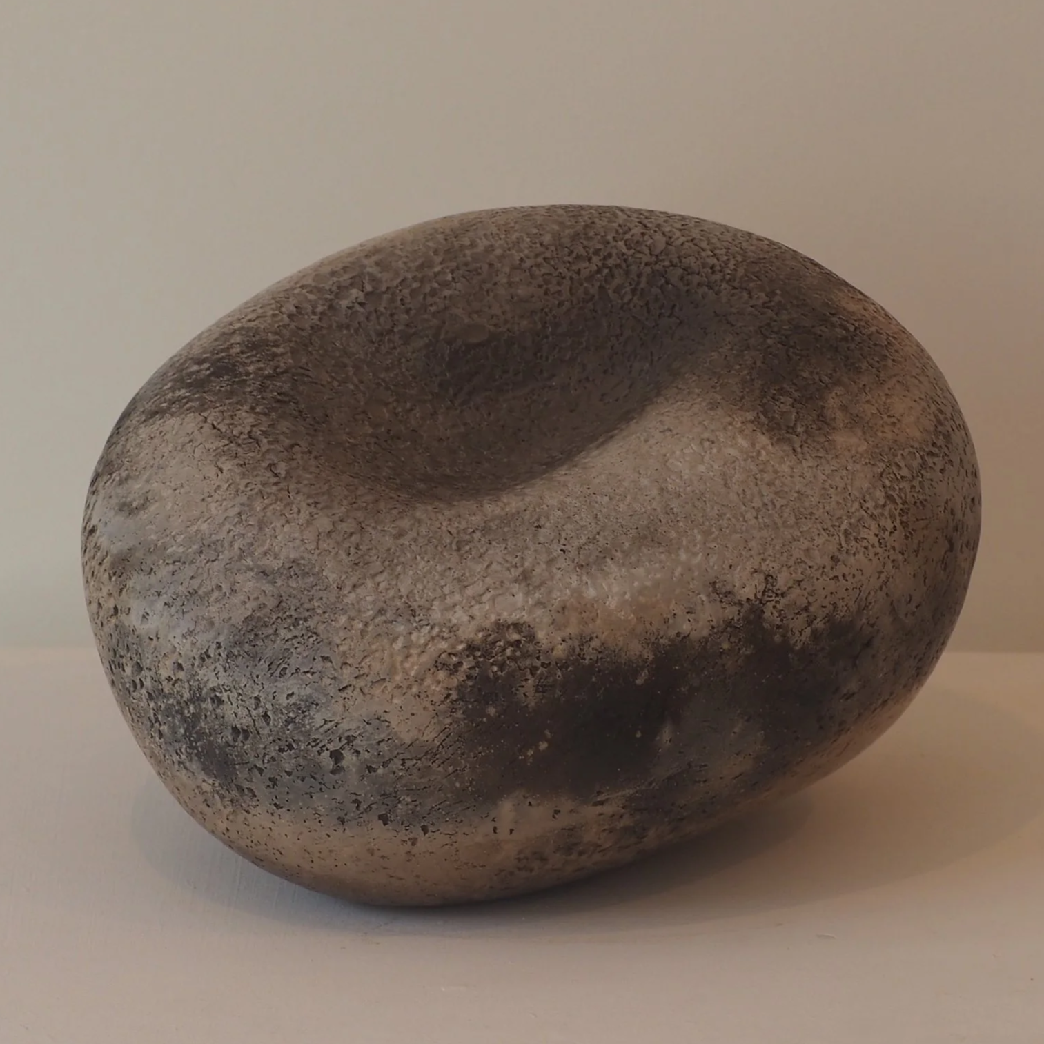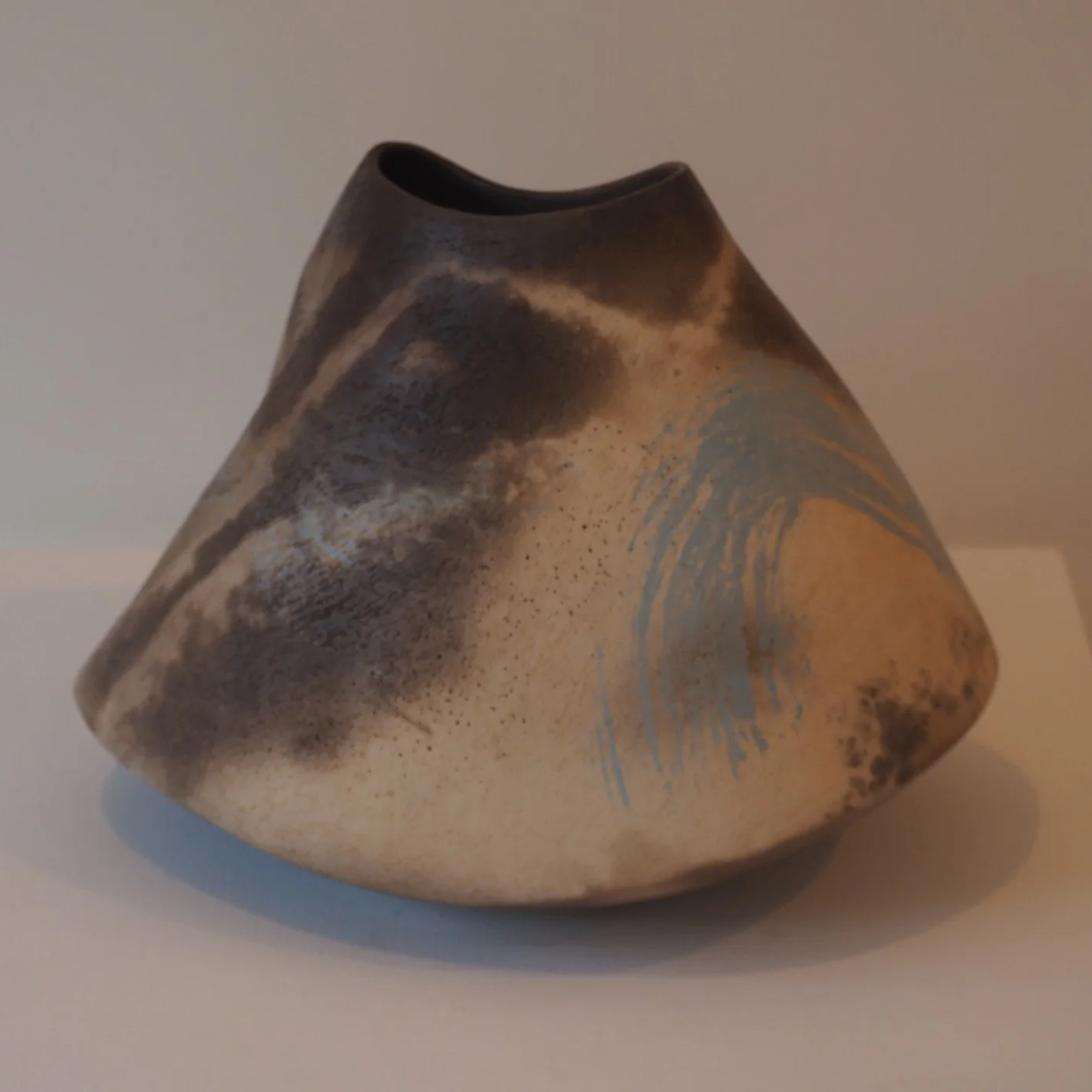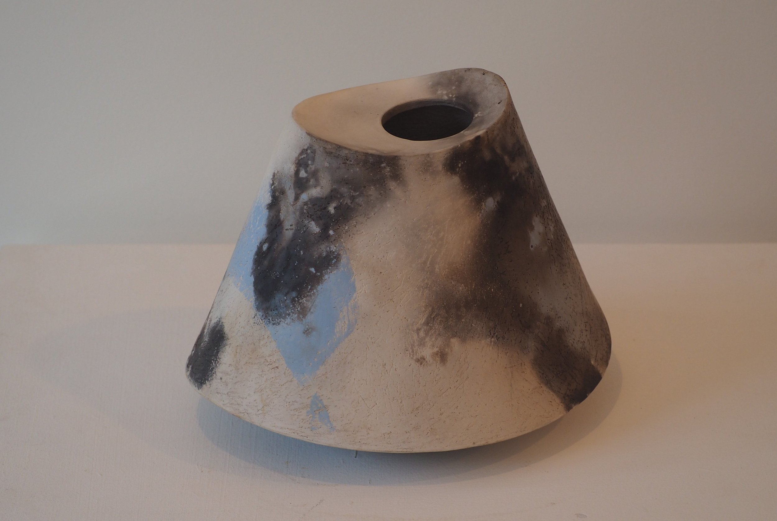 Salisbury-based artist Frances Marr creates works that are rooted in the environment. Drawing on memories of growing up on the Isle of Wight, she takes inspiration from the coasts of the UK, battered by the elements, and the open landscapes of Cumbria. Marr's vessels are smoke fired, where the clay has no glaze but takes on markings during the firing process. The smoke leaves carbonised shadows, emulating foreboding mists and dark, shifting skies.