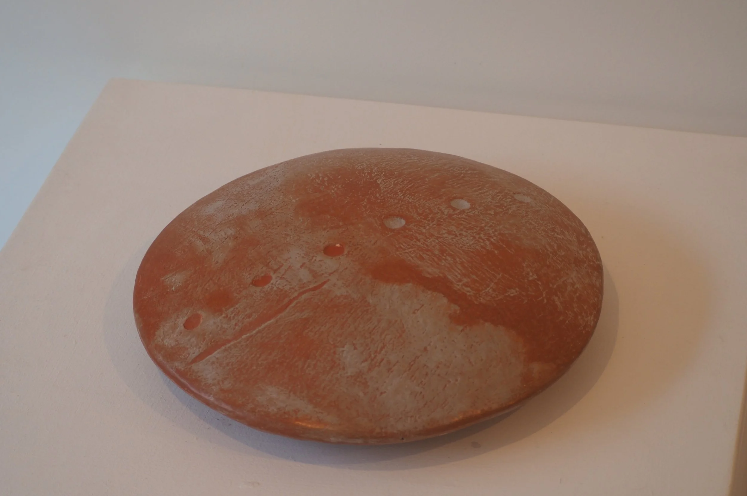 Hand built ceramic with coloured slip, burnished and smoke fired