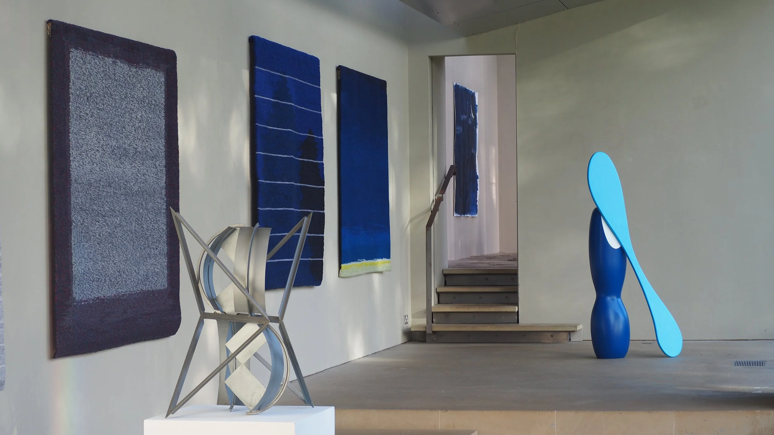 Justine Randall, Philip King and Isaac Witkin’s works in the Gallery at the NewArtCentre, Roche Court Sculpture Park.