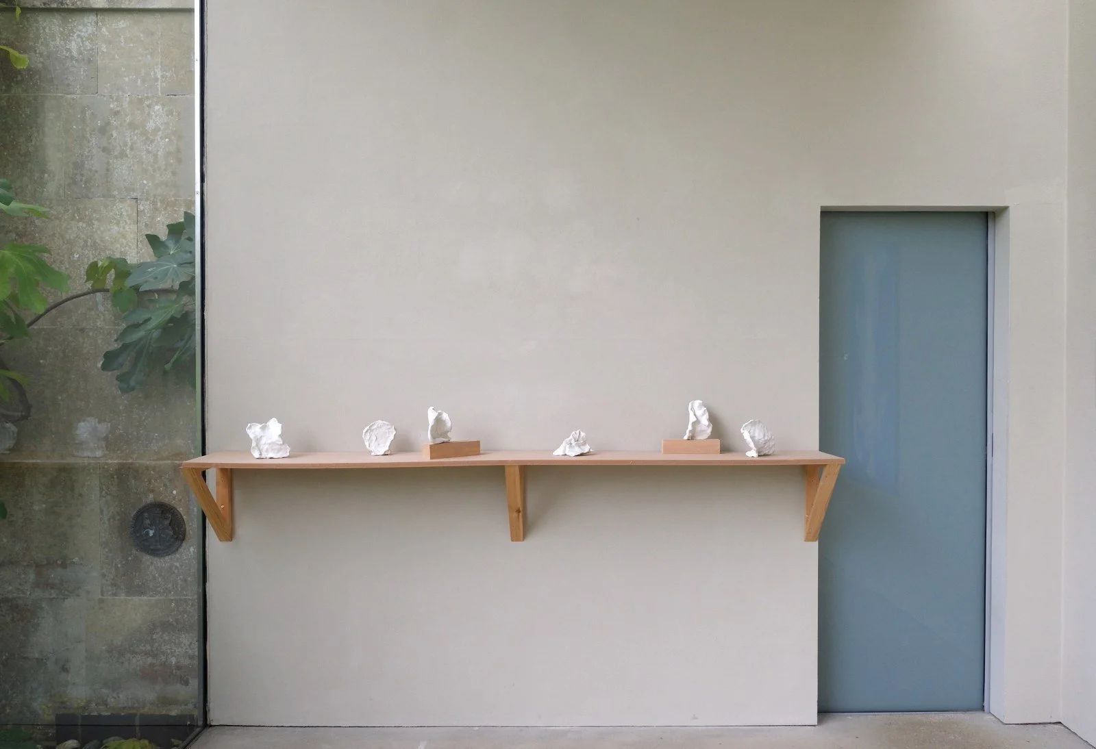 The distinctive blue of the print which is referred to by Professor de Bolla relates to the colour of Cyanotype printing, in which photosensitive paper is exposed to sunlight. The composition of Out of the Blue echoes images of Bernini’s small terracotta figures, known as bozzetti (sketches), which are also referenced in Ward's series of terracotta and porcelain sculptures titled Due Palmi. In this way, each work in Touching Light is in conversation with the other, drawing together the exhibition into one whole.