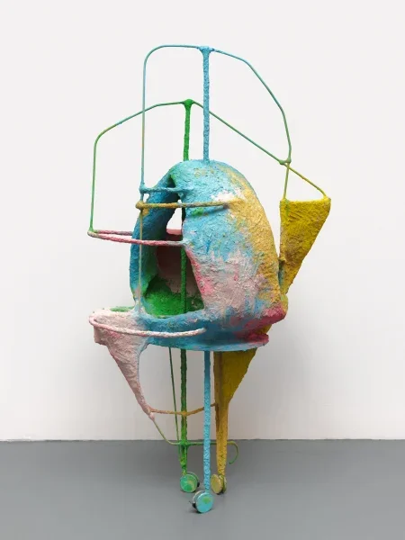 Olivia Bax’s sculpture is unexpected in every way, from its playful compositions to its unconventional materials – paper pulp, chicken wire, household paint. Welding metal armatures and assembling protruding limbs, she pushes us to consider different perspectives. Applying the paper pulp by hand gives Olivia’s work its texture; it illustrates the way the material has been shaped and positioned, while the colour tones explored in her work further demonstrate touch or pressure.