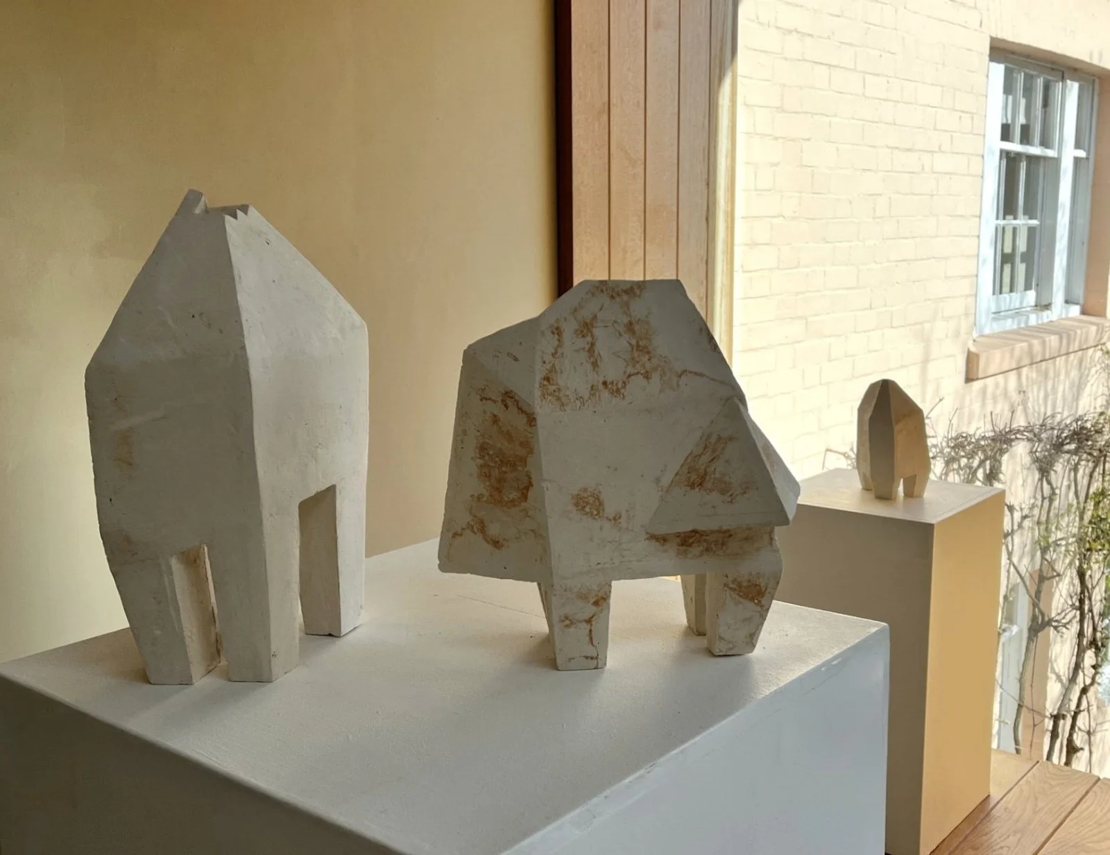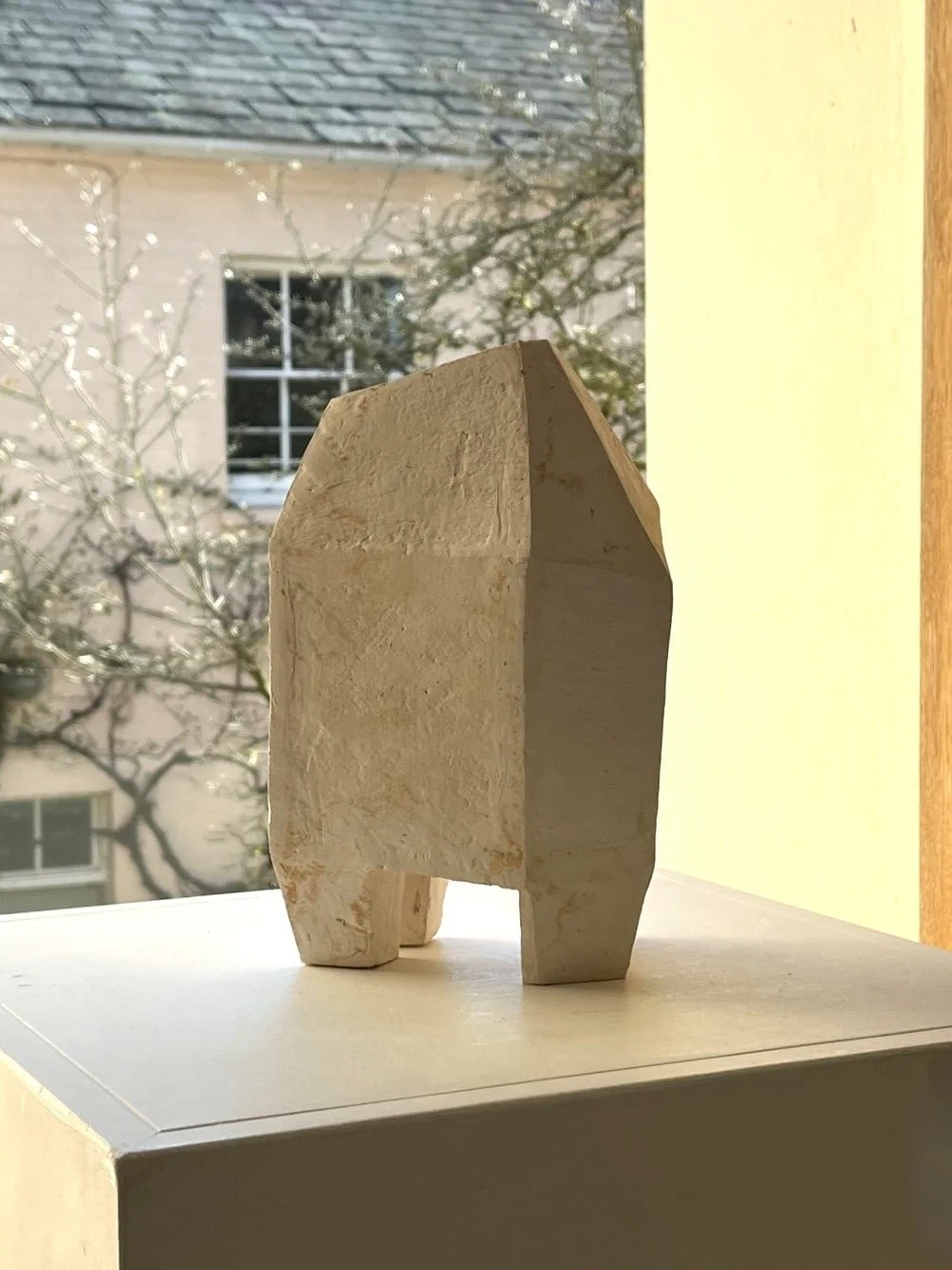 #4 is part of a series of work that developed and evolved into more free-flowing structures as the sequence progressed. The angled shapes, rough textures and surface marks reference the monumentality and construction methods typical of Brutalism, although there is perhaps an attempt to domesticate its nature by bringing the sculpture inside.