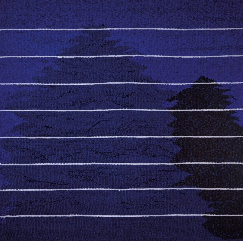Randall calls into question why darkness causes so much discomfort, disorientation and fear. By opting for a thicker weft, Midnight, Moonlight & Shadows exudes a weighted presence, much like the oppressive feeling of standing beneath a great tree at night. The grey lines are the shadows cast by the moon, falling on only the uppermost surfaces of the trees.
