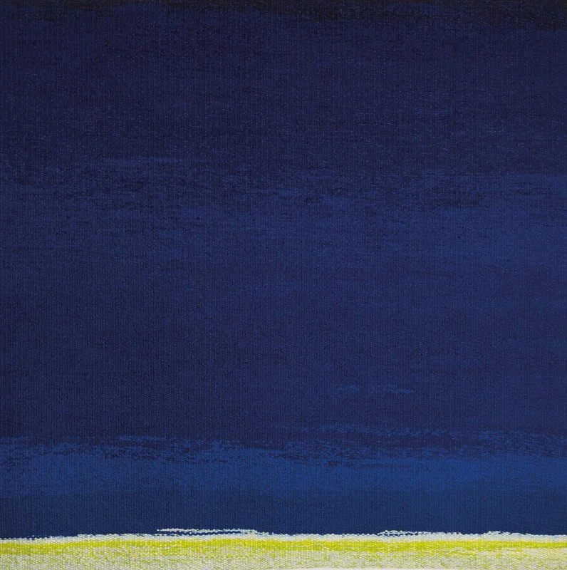 Dusk is often the time when the sky is the most vivid shade of blue, it denotes the start of evening and the end of the working day. Like the line of light tightly woven at the bottom of this tapestry, Dusk represents feelings of excitement and apprehension, the tension of potential for what the night ahead may bring.