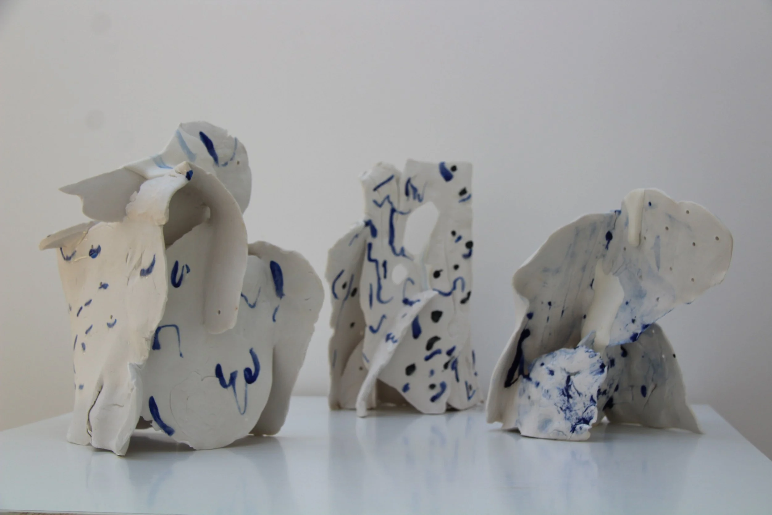 These blue and white ceramics complete the exhibition and demonstrate the full range of Nao's practice.