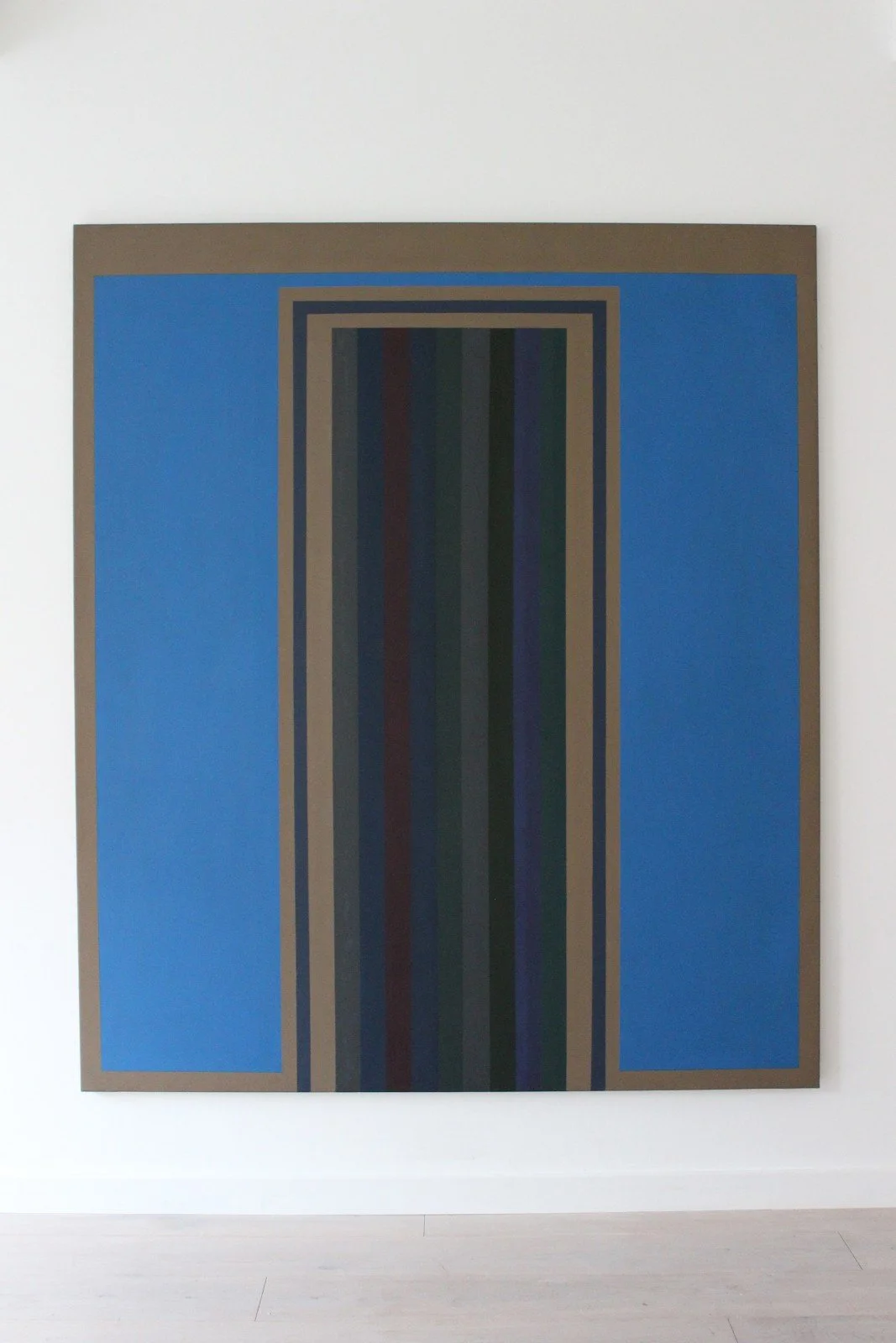 Ted Bentley, a large-scale oil painting on display in the Design House, is a prime example of Denny's work. A member of the Track series, Ted Bentley, Gully Foyle and Madras are characterized by vertical bands of colour. The paintings' meticulously manufactured structure have an architectural quality; evocative of a doorway, Denny always stipulated that his paintings should be hung 6 inches from the floor, so that the viewer may feel they may abandon reality, and step into another world.
